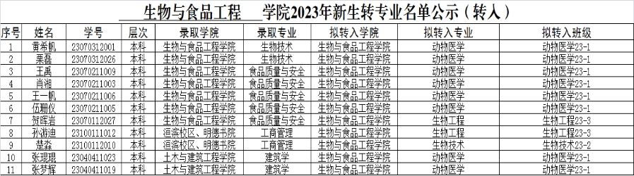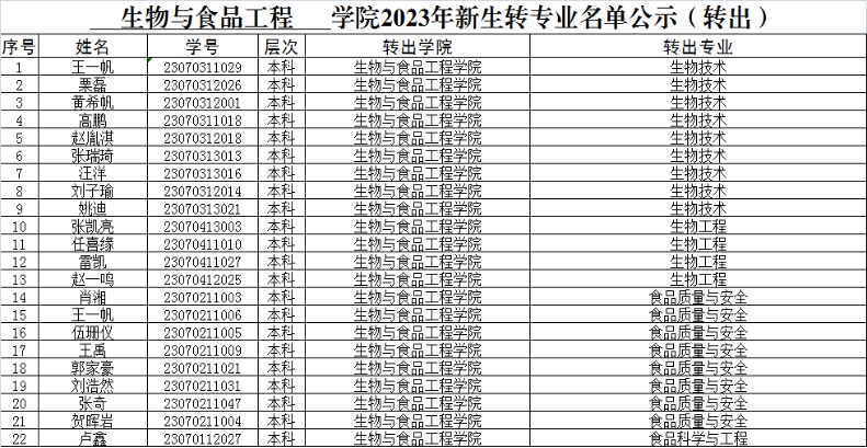 根据《beat365在线唯一官网学生转专业管理办法》,经个人申请,学院考核,拟同意本科转入11人,本科转出22人,现将拟转专业学生的信息公示如下。公示期从2023年12月13日至2023年12月15日,共计3个工作日。公示期内,对公示结果有异议的,请在公示期内到beat365在线唯一官网215辅导员办公室咨询。
