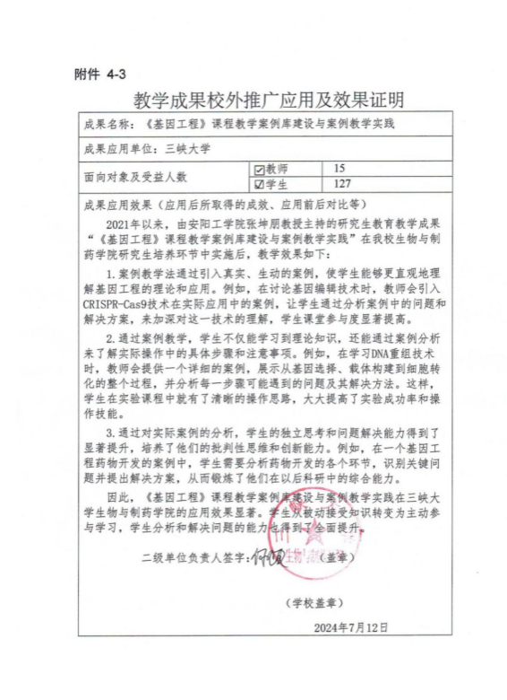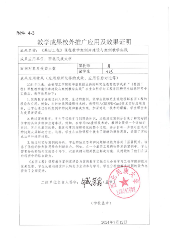 《基因工程》课程教学案例库建设与案例教学实践-推广应用