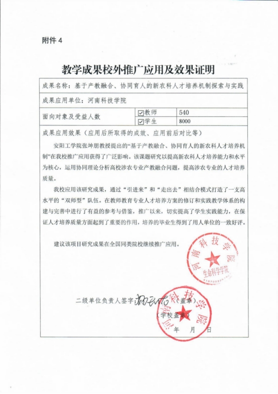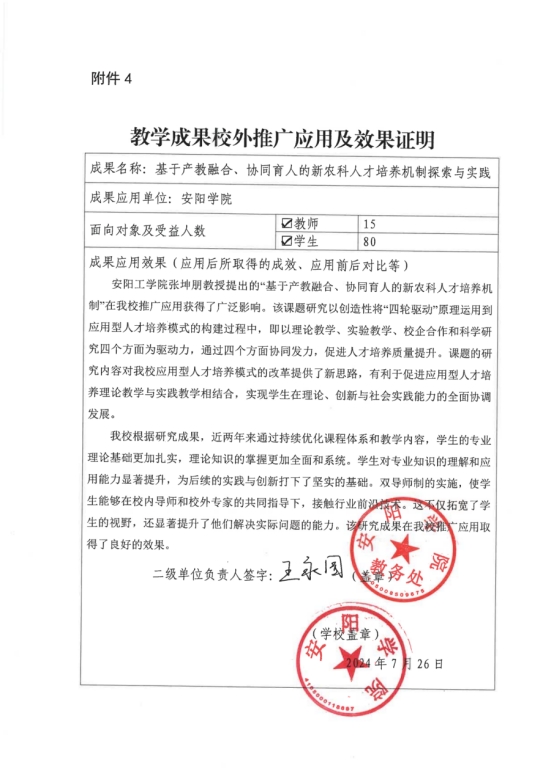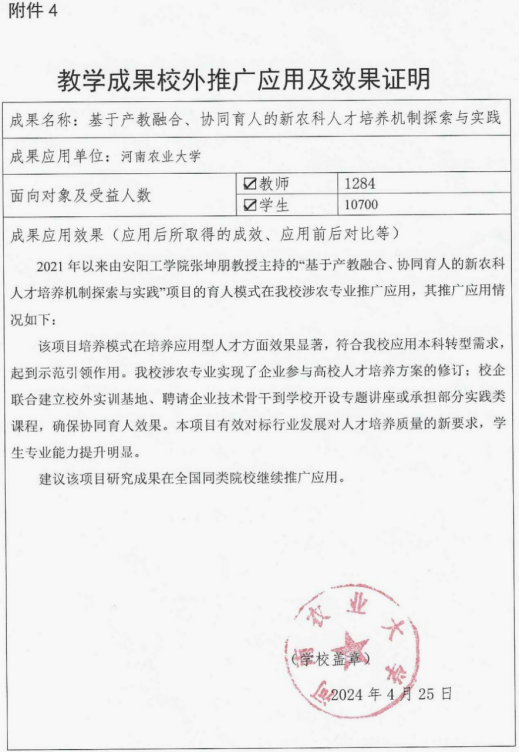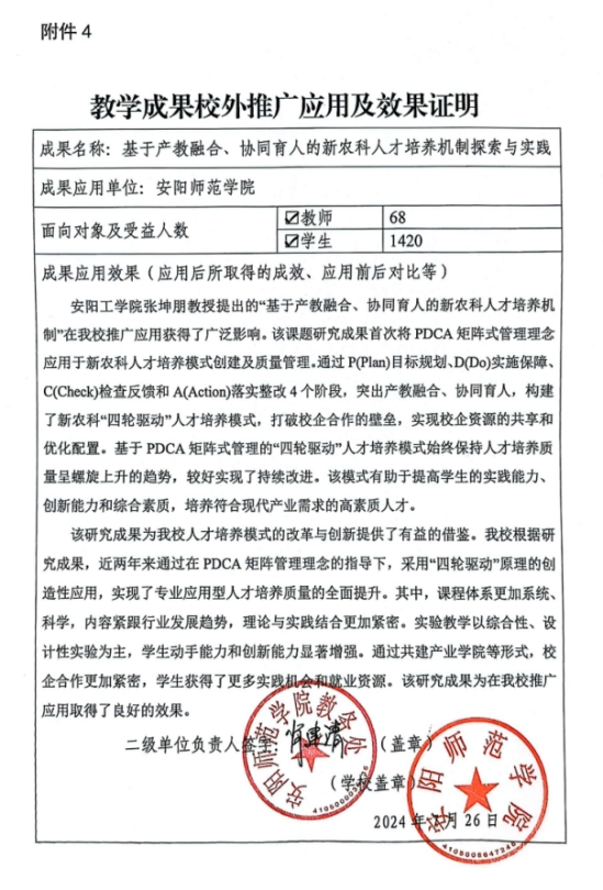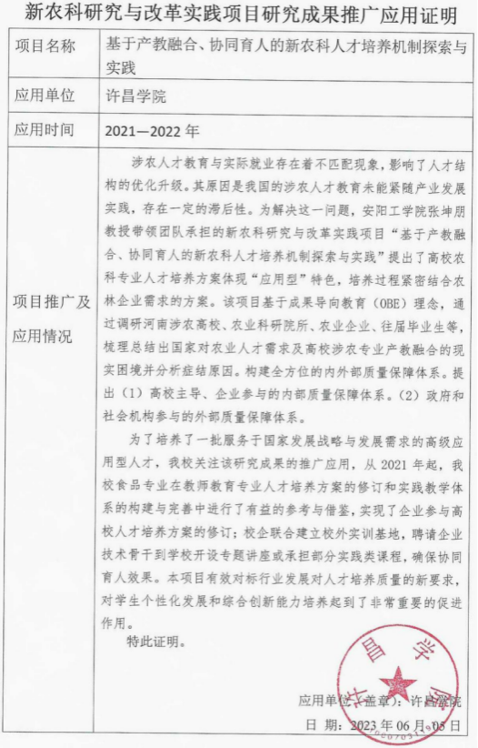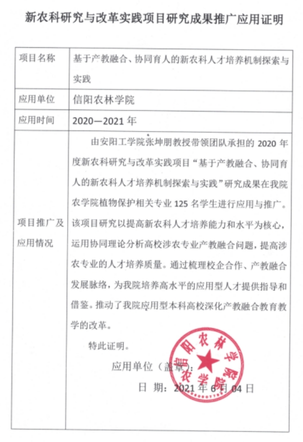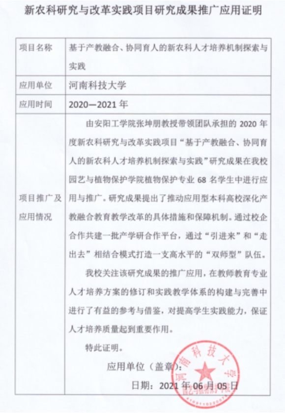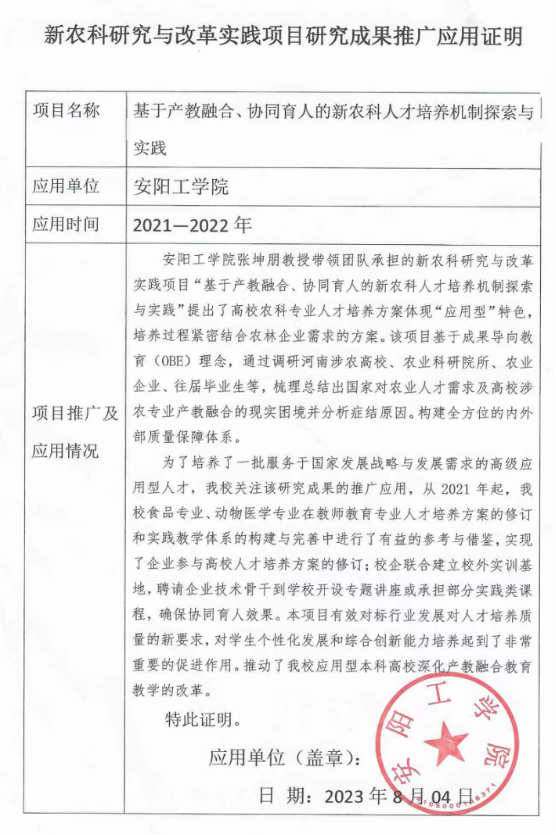 基于产教融合、协同育人的新农科人才培养机制探索与实践-推广应用