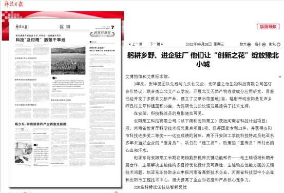 (1)科技日报:躬耕乡野、进企驻厂他们让“创新之花”绽放豫北小城